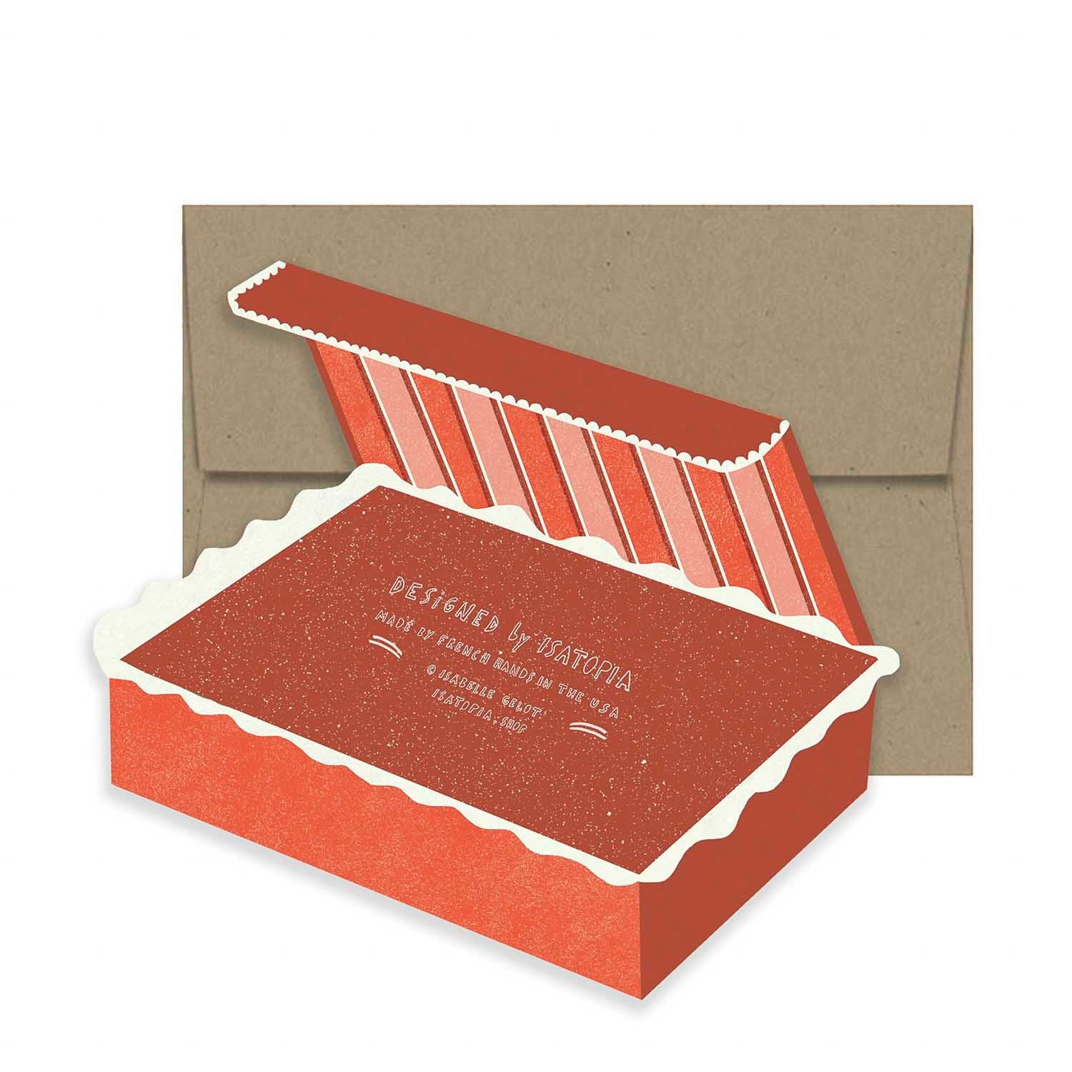 Die Grußkarte mit dem originellen Design ist aus 400 g schweren Karton gestanzt und innen blanko. Wie alle Produkte von Isatopia werden dafür nachhaltige Materialien verwendet, die Herstellung erfolgt in lokalen Werkstätten.