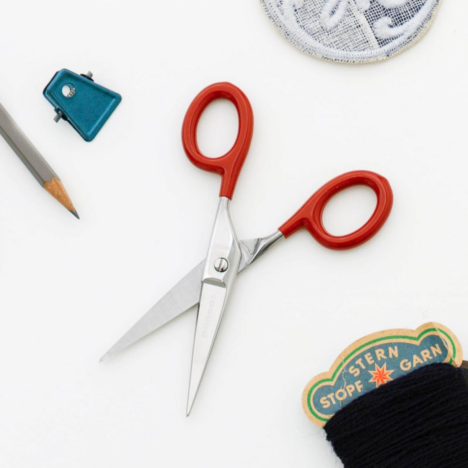 Diese kleine Schere vom japanischen Hersteller Hightide Penco wird mit gummierten Griffen geliefert. Damit hat man besseren Halt und kann präziser arbeiten.