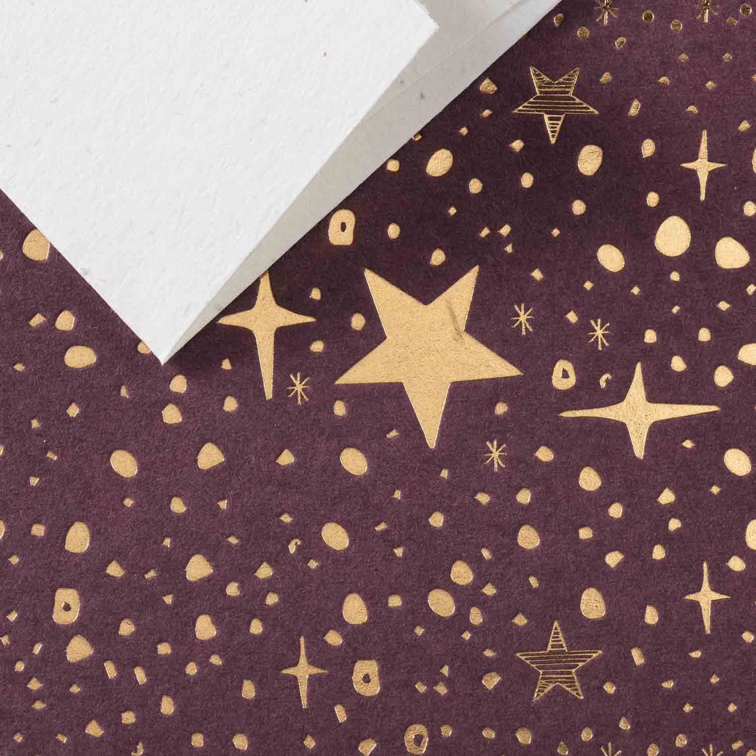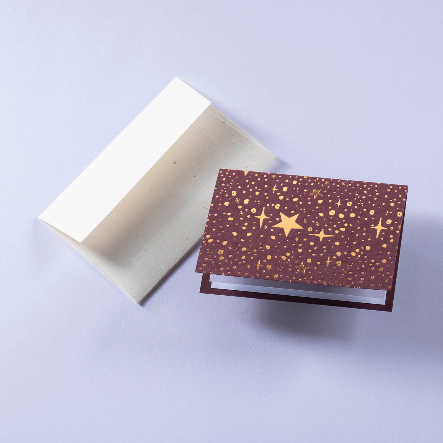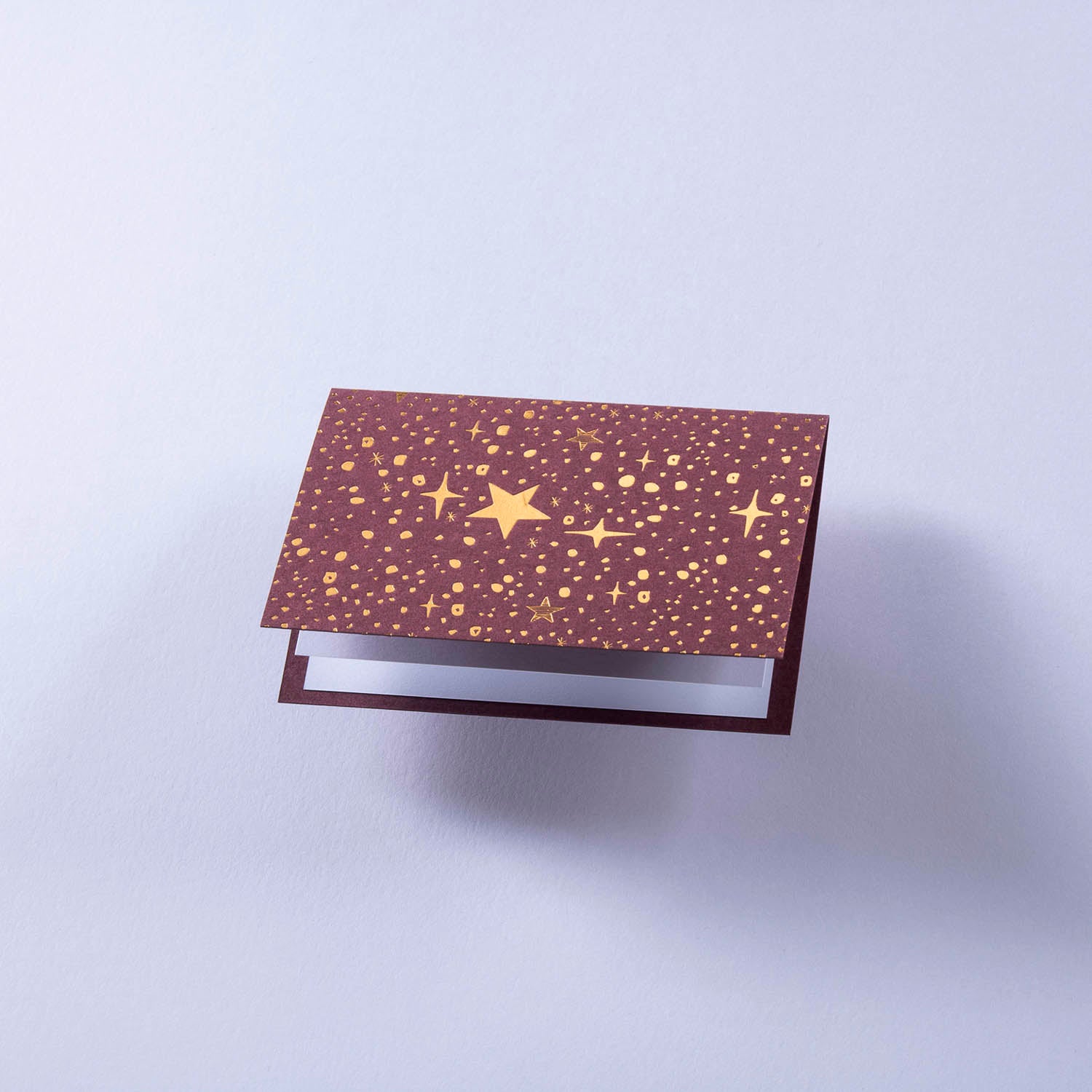 Passend für Weihnachten wurde die kleine Kartenserie im Format DIN A7 um himmlische Motive in goldener Heißfolienprägung erweitert. Das verwendete Papier ist Gmund Colors in sorgfältig ausgewählten Farbtönen. Ein weißer Einleger macht das Beschriften besonders angenehm. Das Richtige für alle, die wenig schreiben möchten und die Wirkung eines besonderen haptischen Erlebnisses kennen.
